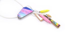 Hex Necklace II | photograph glass decal on enameled steel. sterling silver. leather. broken skateboards. spray paint. pigment. brass.